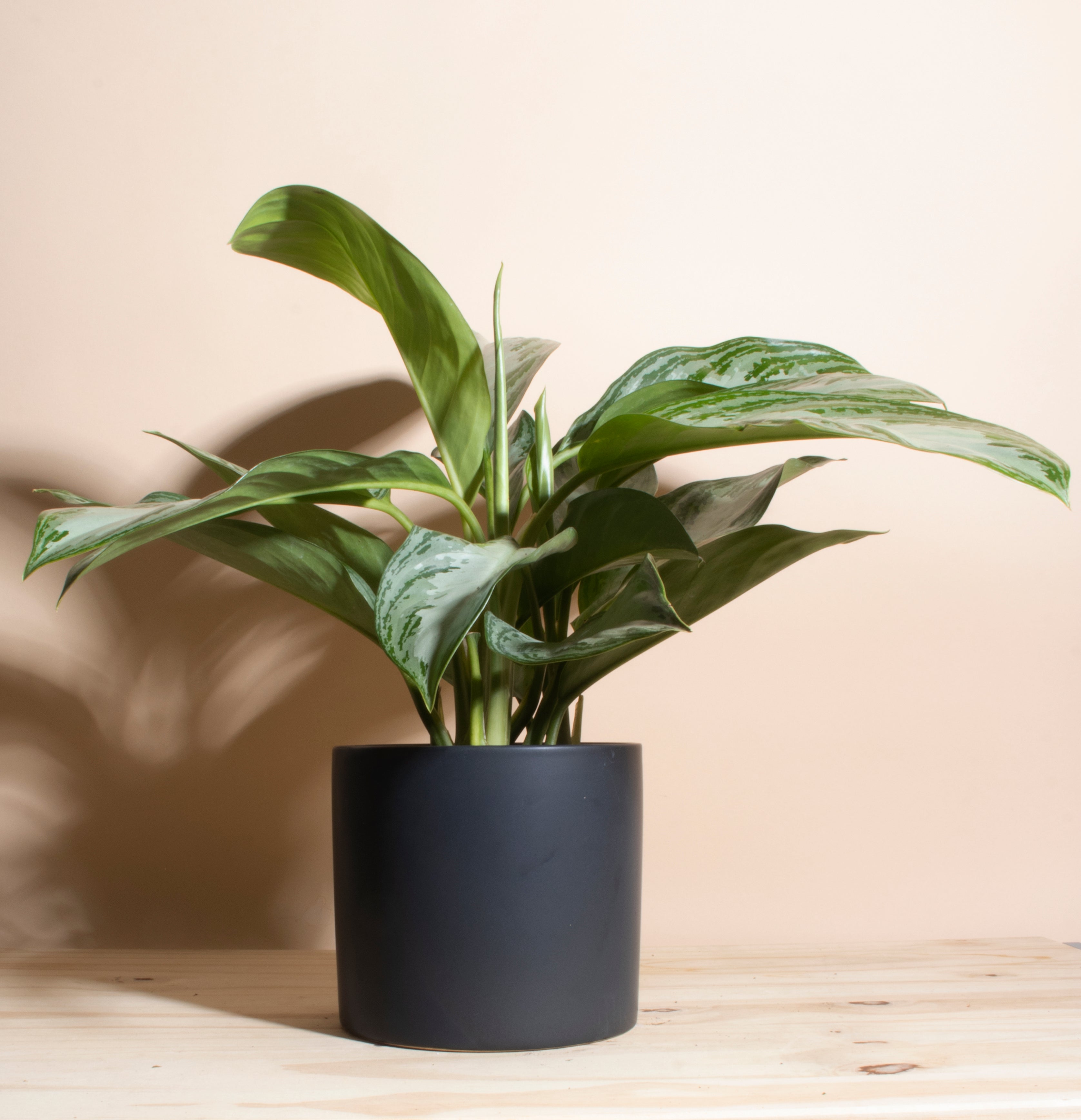 Aglaonema Silver Bay 'Chinese Evergreen' in Black Ceramic Cylinder Planter