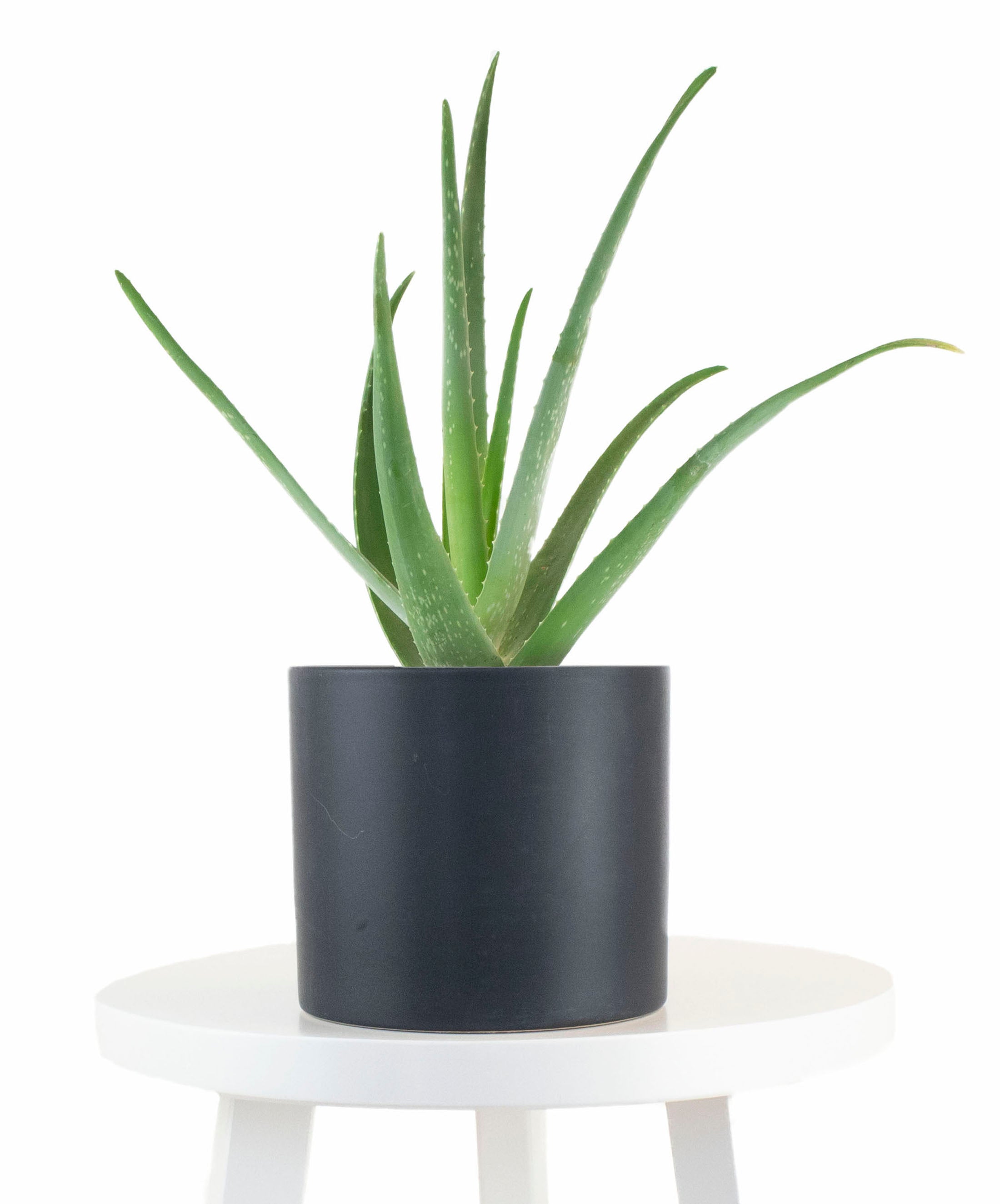 Aloe Vera House Plant in Black Ceramic Cylinder Planter