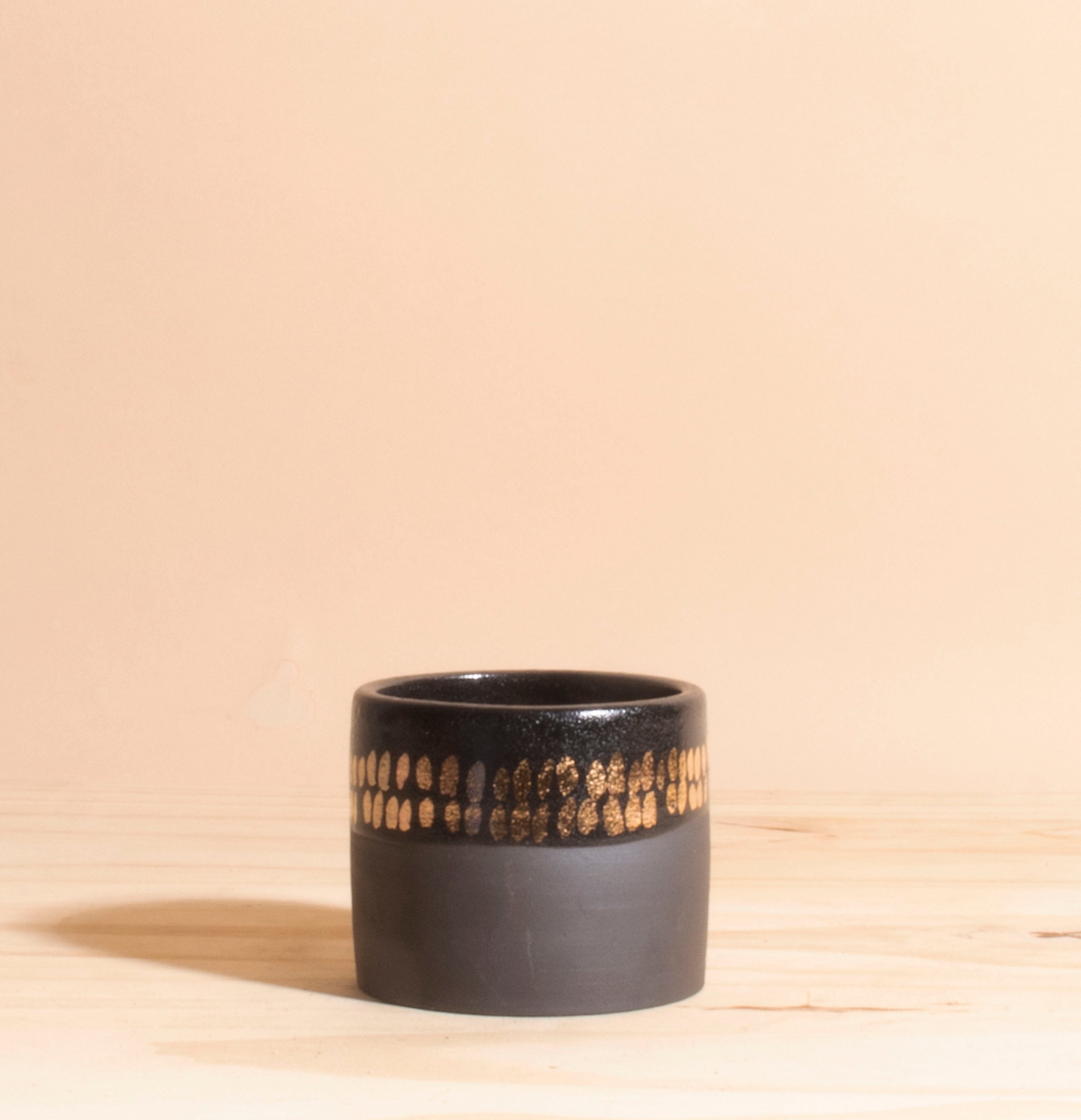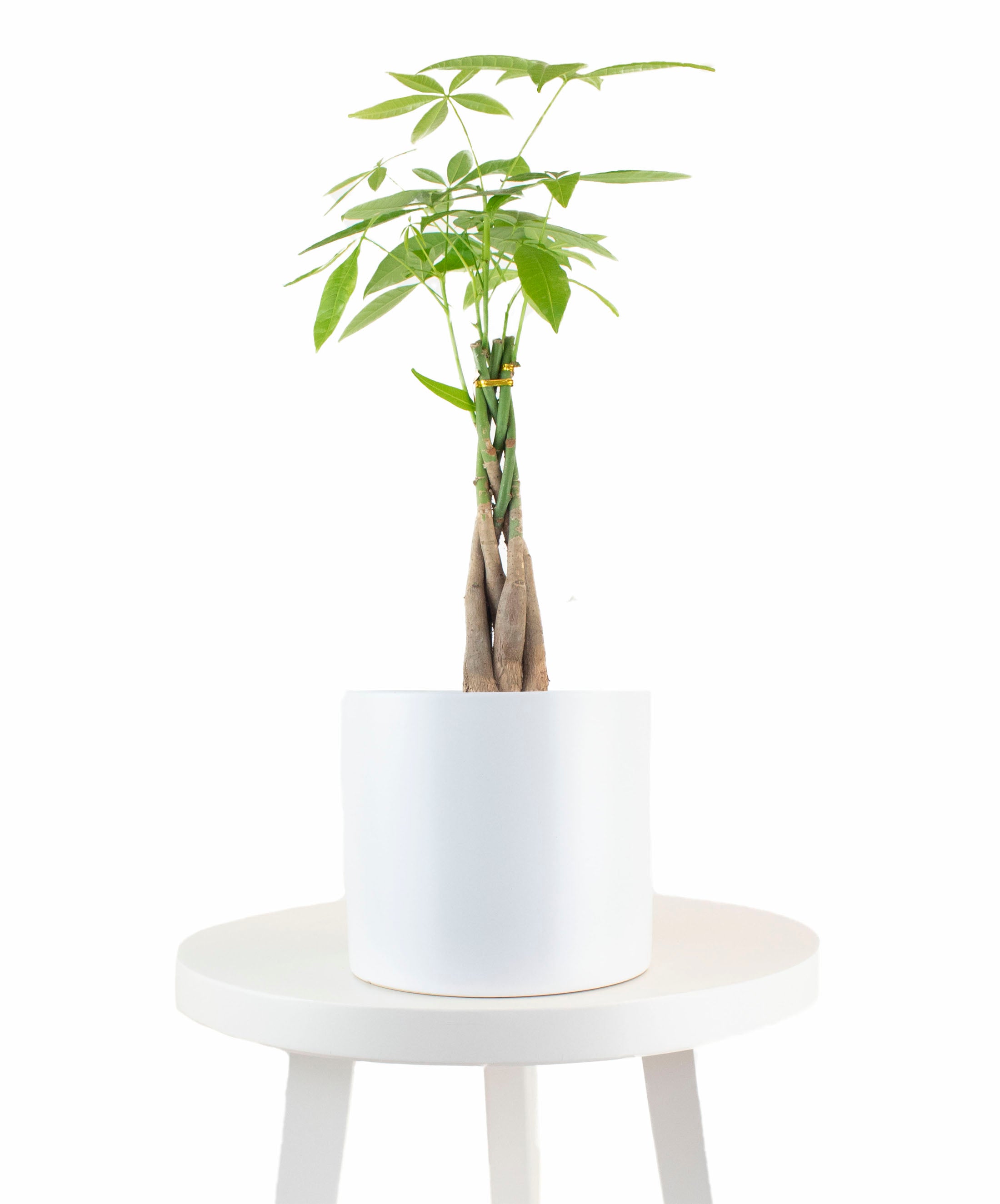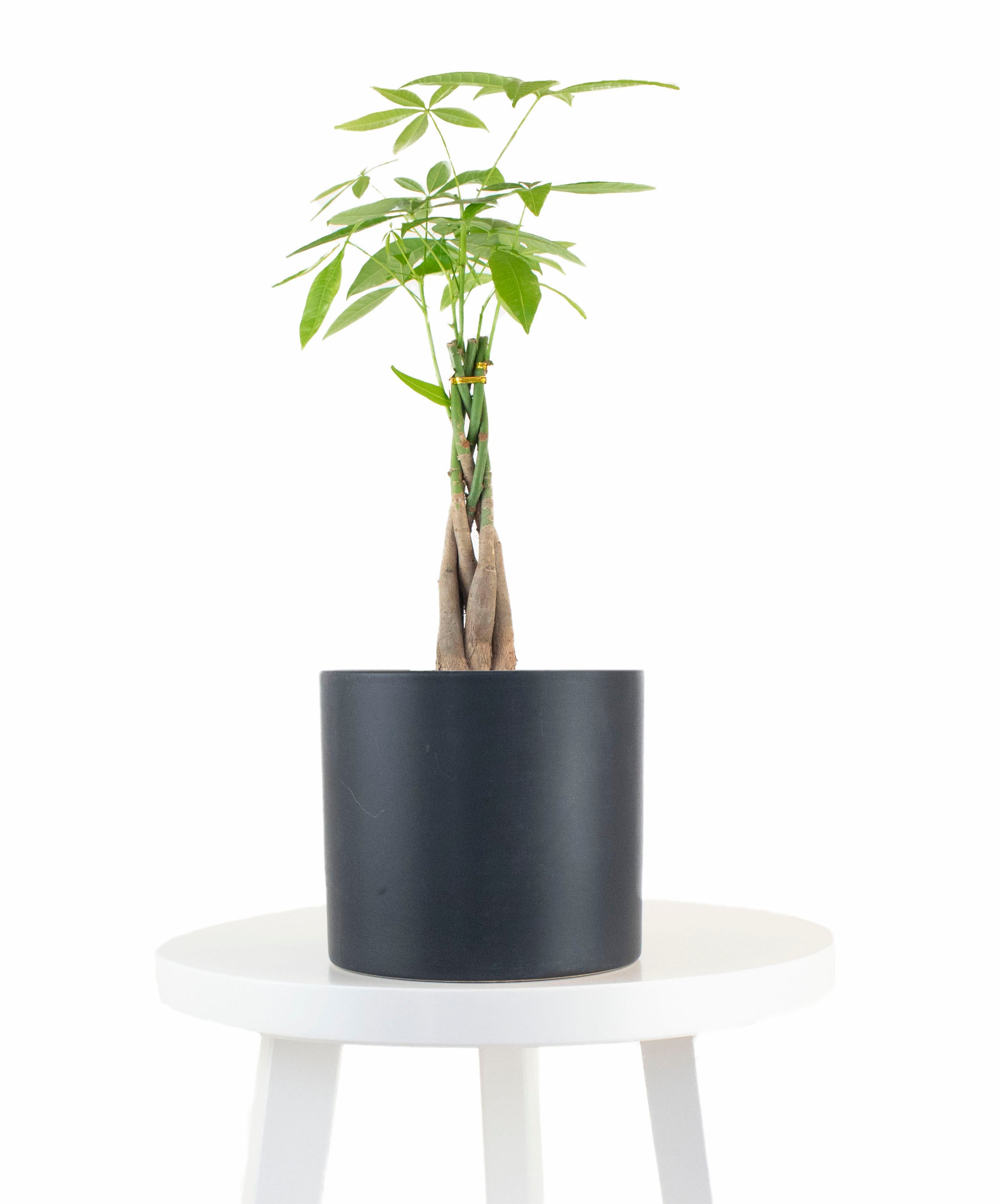 Money Tree Plant in Black Ceramic Cylinder Planter
