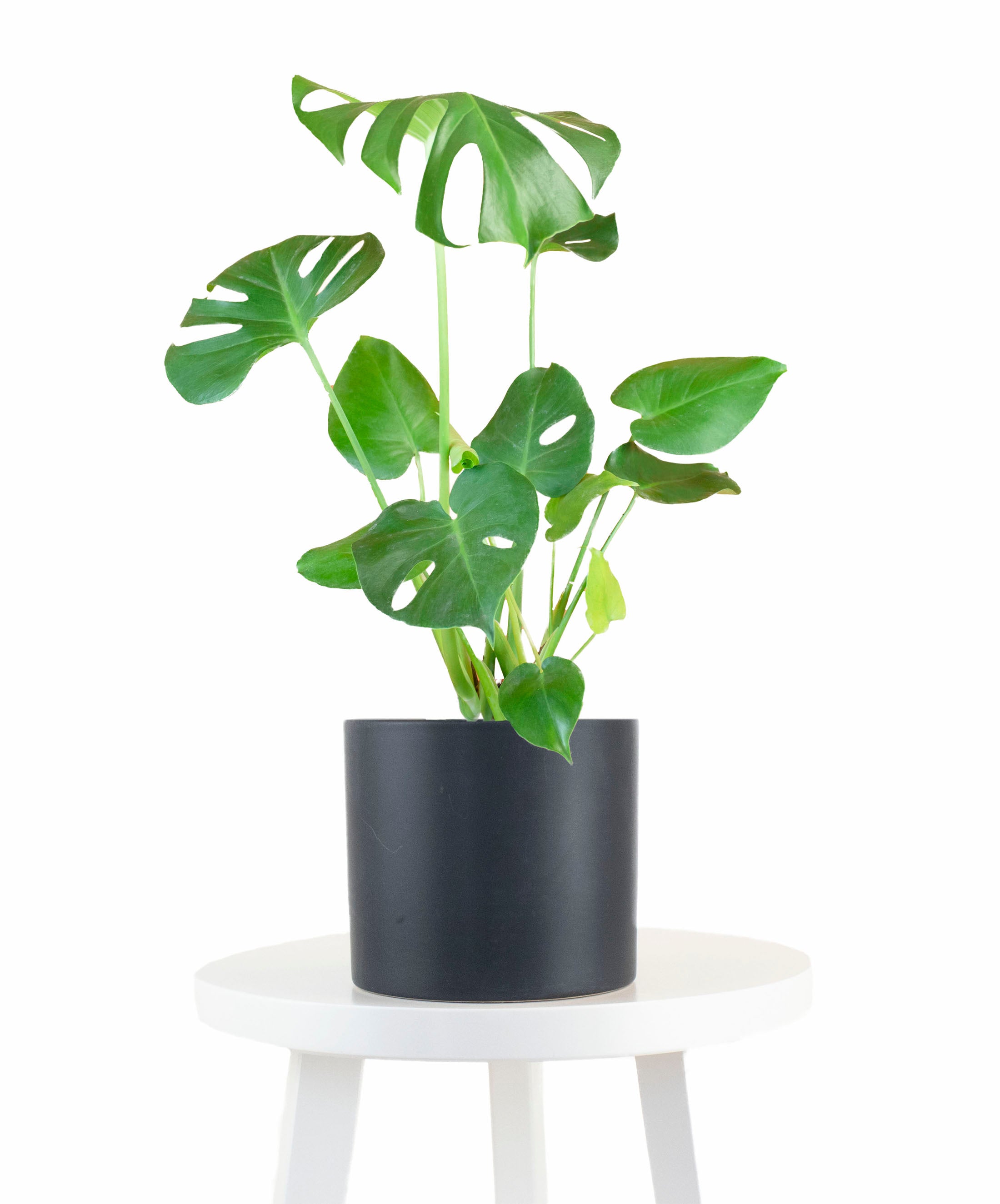Monstera Deliciosa in Black Ceramic Cylinder Planter