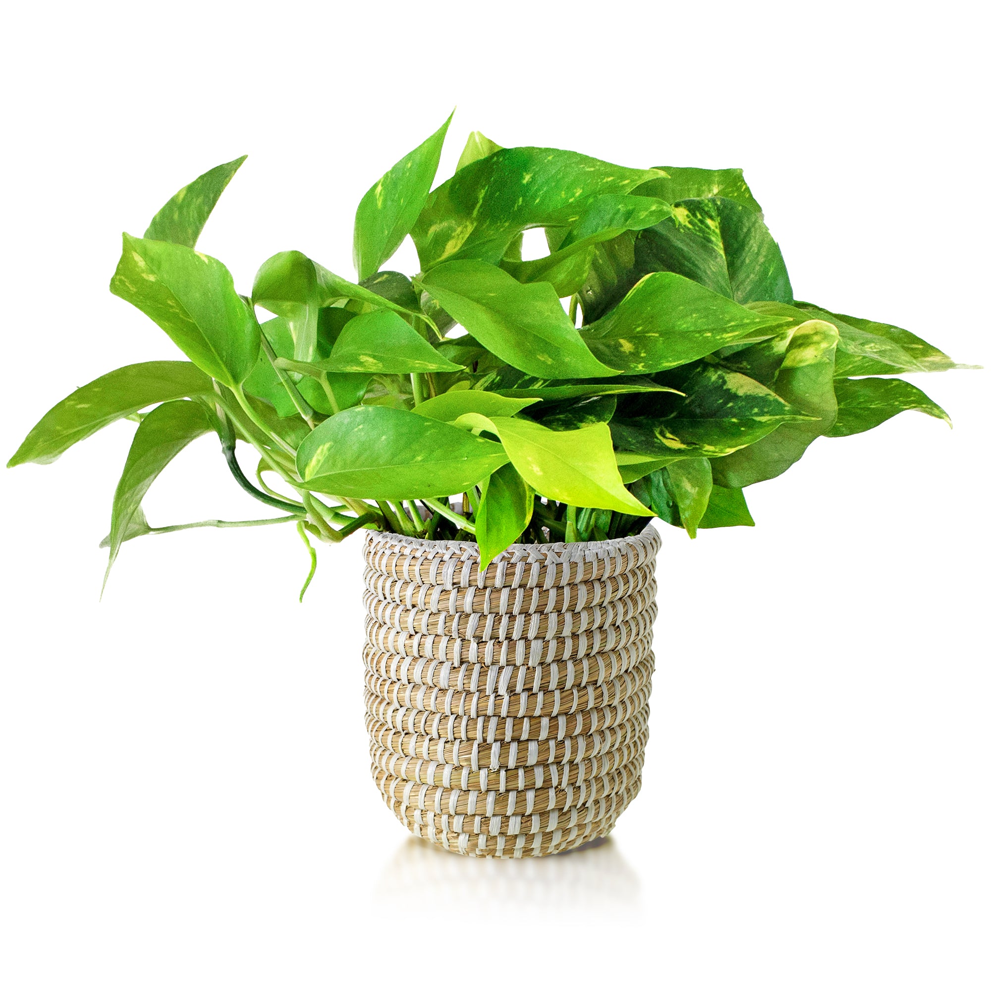 Potted Pothos in Hanging Ceramic Planter with Leather Strap