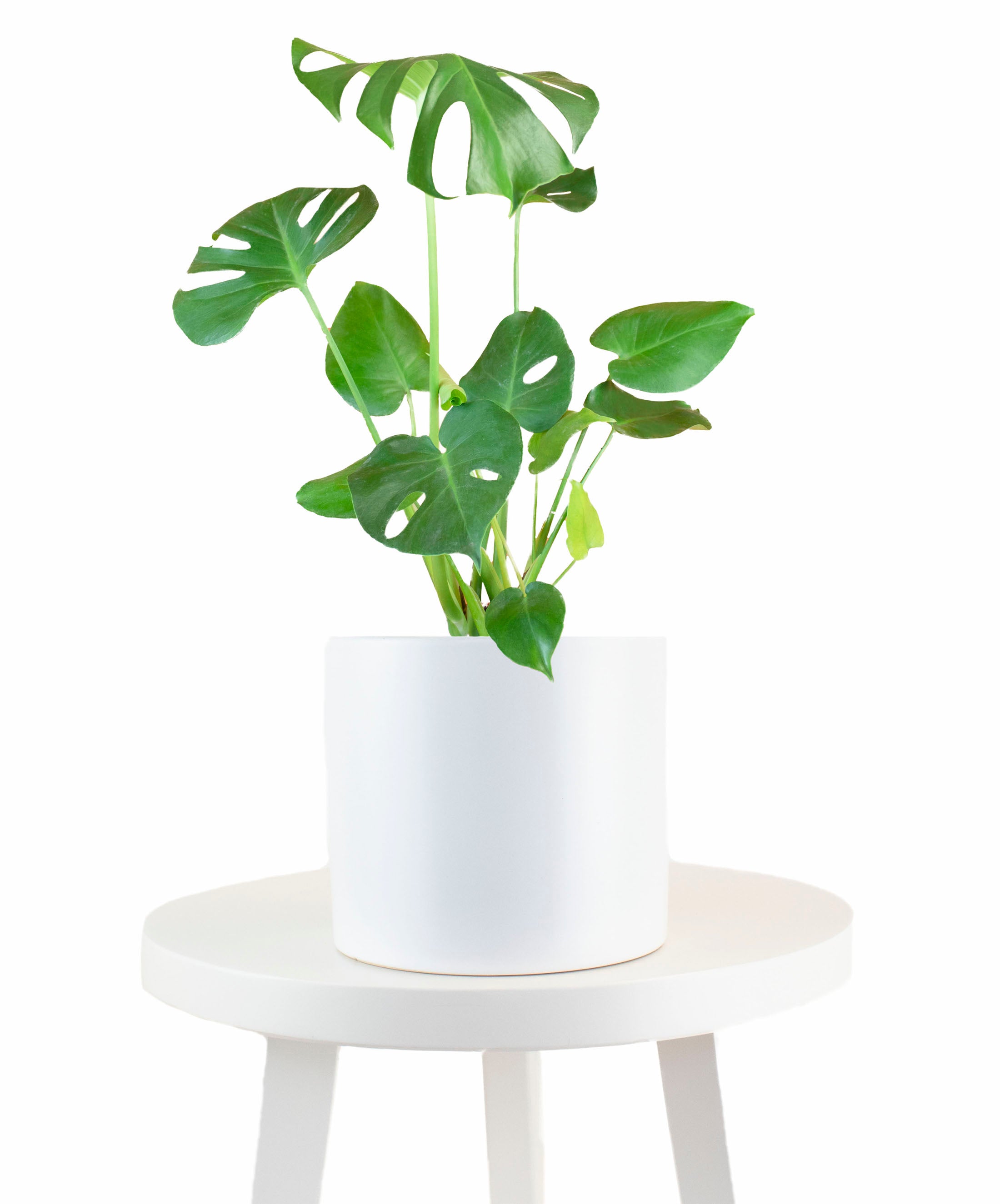 Monstera Deliciosa in White Ceramic Cylinder Planter