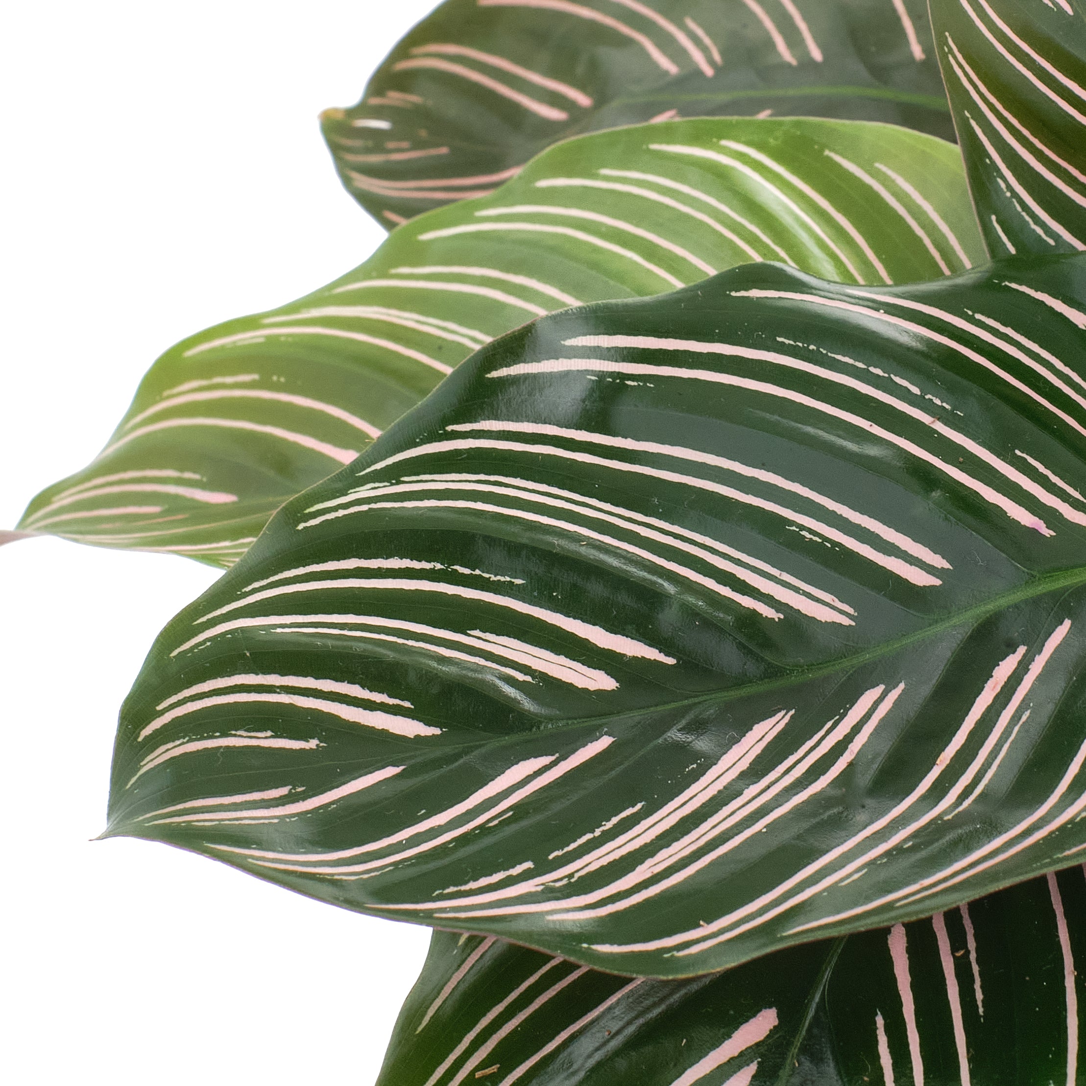 Calathea ornata 'Painted Lady' or 'Pinstripe' a cultivar of the Calathea ornata species, is a striking tropical houseplant known for its exquisite foliage. This variety boasts broad, lance-shaped leaves adorned with bold, contrasting stripes, reminiscent of an artist's brushstroke. The intricate patterns of deep green and bright pink create a captivating visual display, earning it the moniker "Painted Lady." Renowned for its preference for moderate humidity and indirect light, this Calathea exemplifies both botanical elegance and sensitivity, making it a prized choice among plant enthusiasts seeking a vibrant and ornamental addition to their indoor spaces.