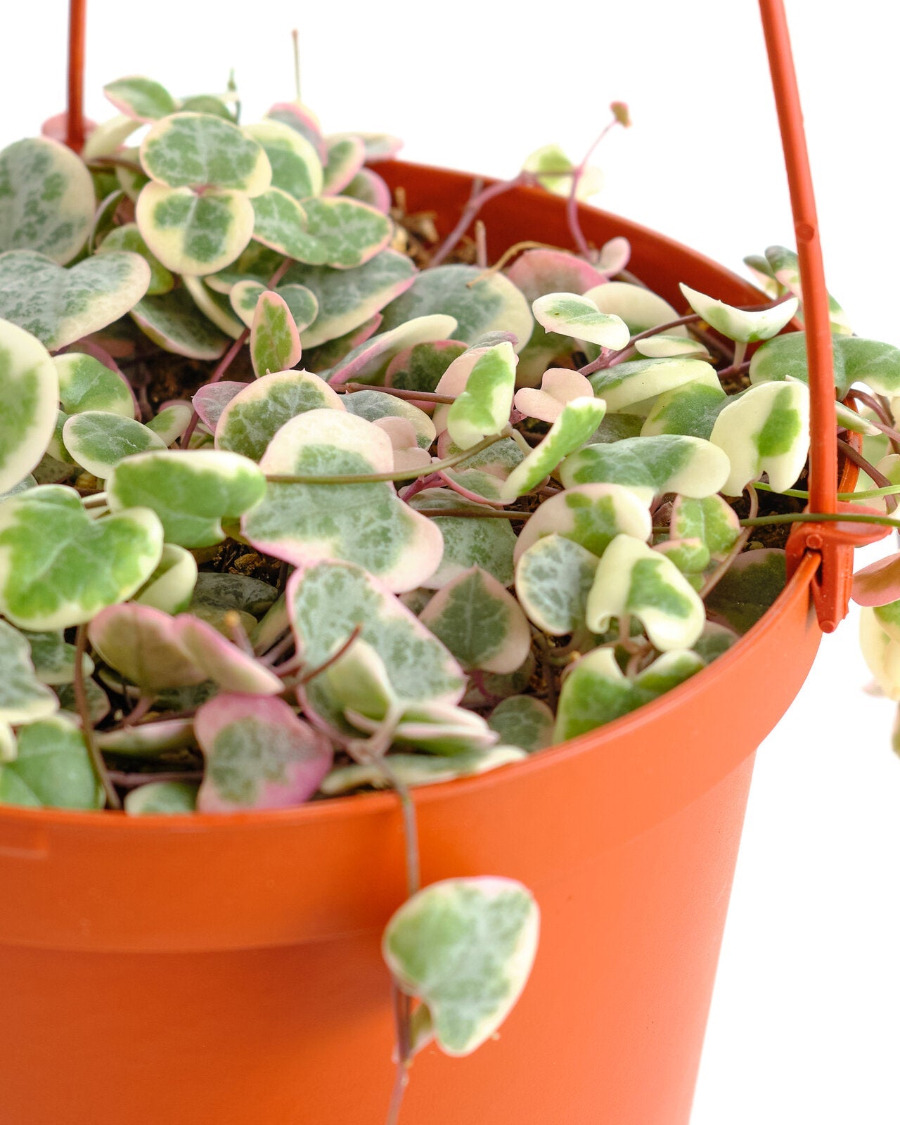 Pot: Variegated String of Hearts prefers to be slightly root-bound and doesn't require frequent repotting. When repotting, choose a pot that is only slightly larger than the current one.