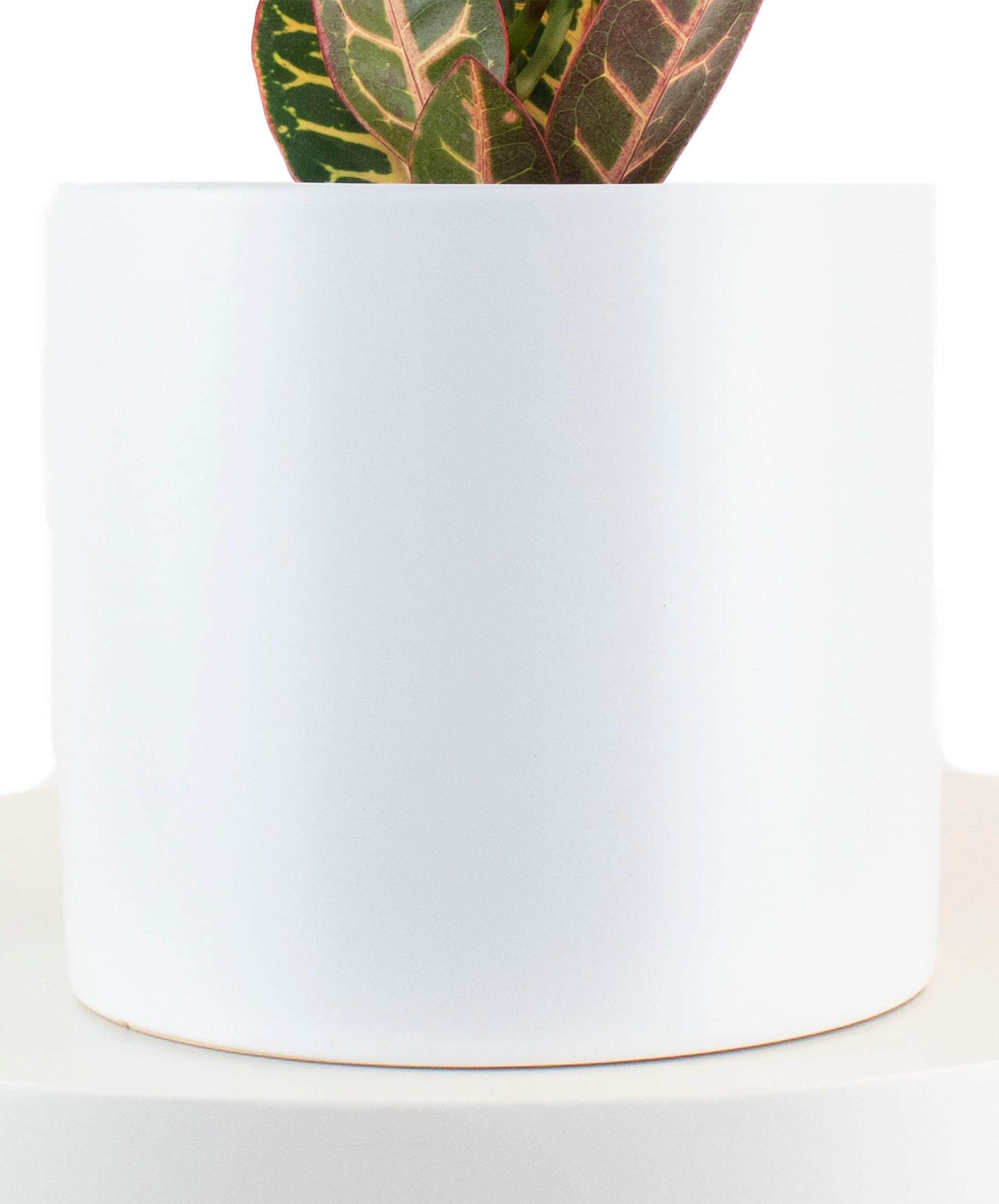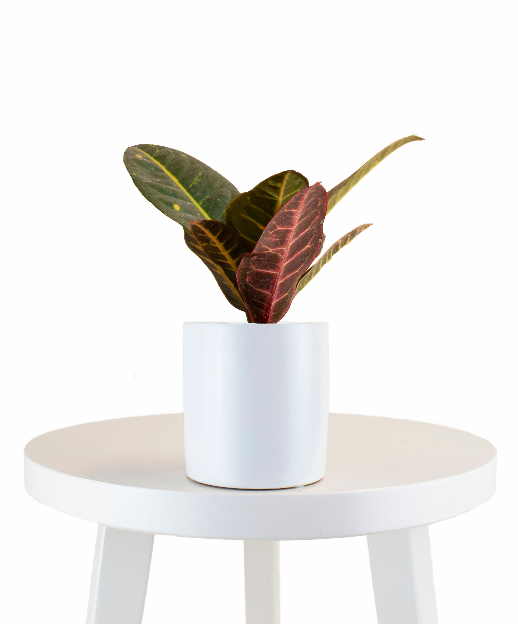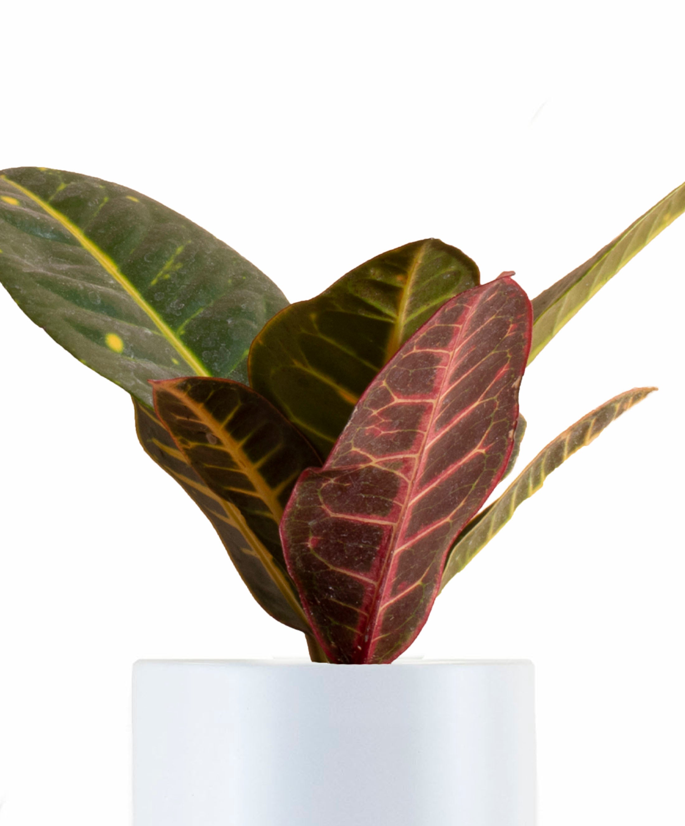 Croton Petra House Plant in White Ceramic Cylinder Planter