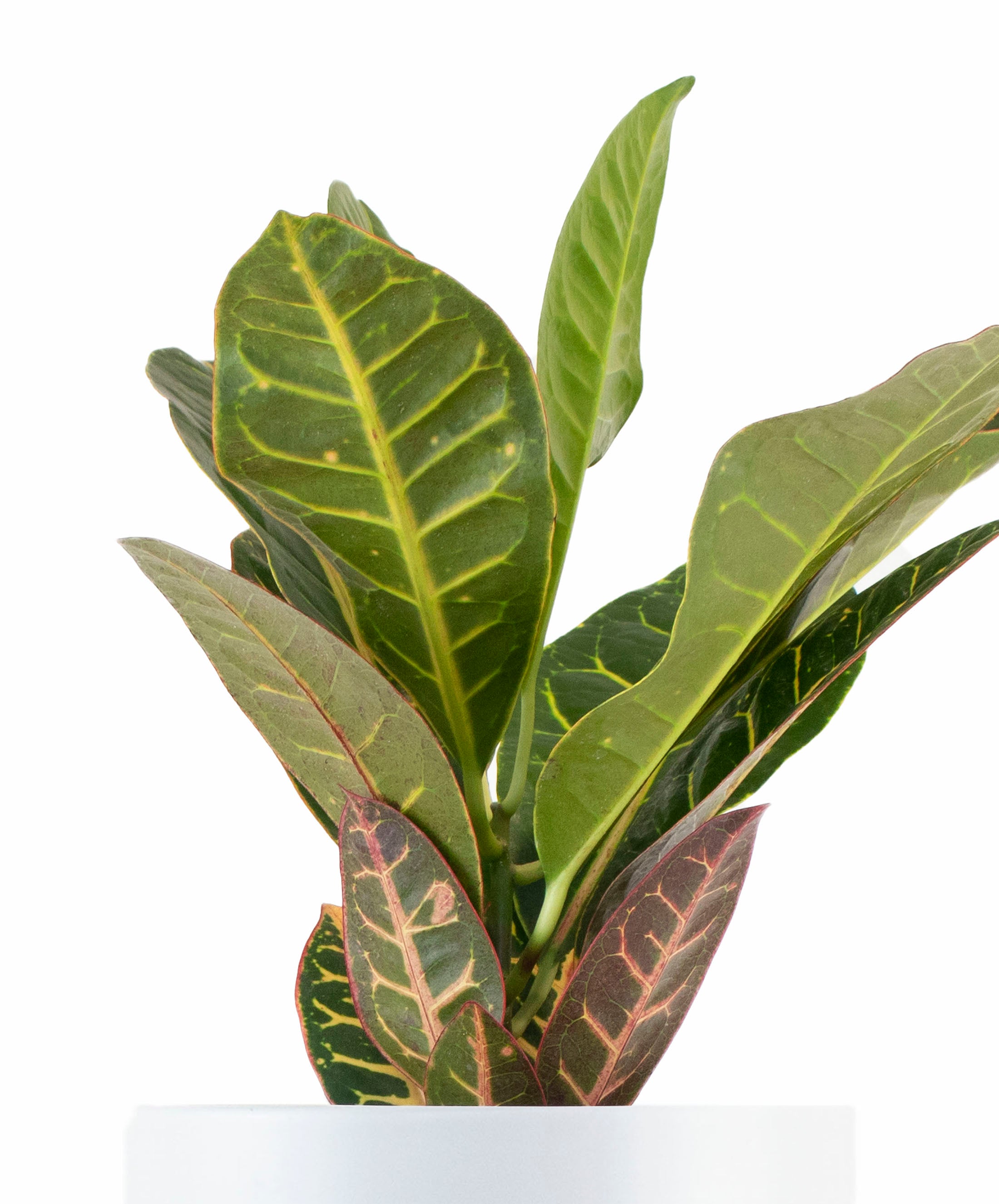 Croton Petra, scientifically known as Codiaeum variegatum 'Petra,' is a stunning and popular tropical houseplant celebrated for its striking foliage and vibrant colors. With its glossy, leathery leaves featuring a captivating blend of red, orange, yellow, and green hues, Croton Petra adds a bold and tropical touch to interior spaces. Its distinctive appearance and relative ease of care make it a sought-after choice for home and office environments. This ornamental plant is not only visually captivating but also adaptable, thriving in bright, indirect light and providing an appealing solution for those looking to enhance their indoor greenery with a touch of tropical flair.