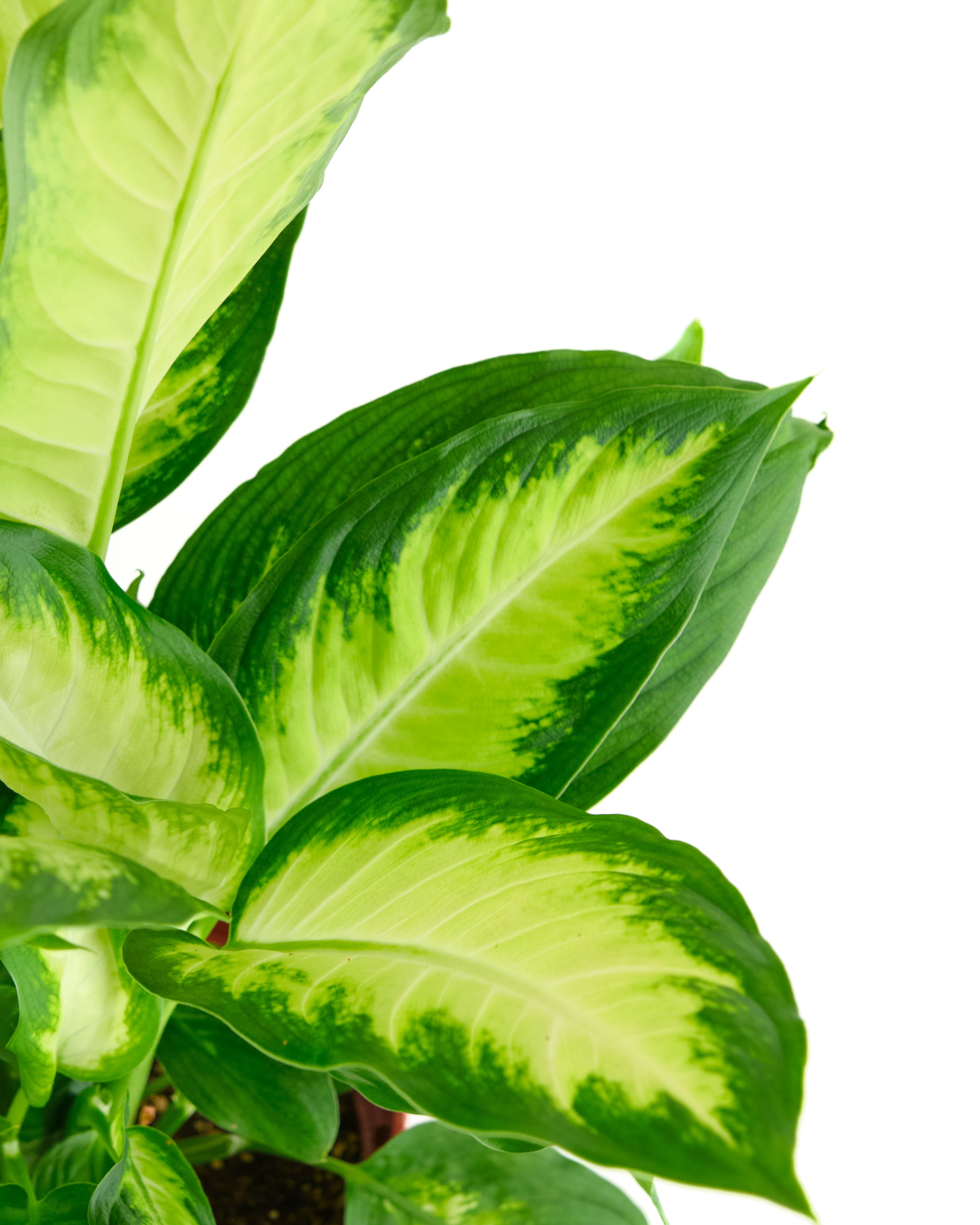 The Dieffenbachia Camille, also known as Dumb Cane, is a striking indoor plant celebrated for its bold, lush foliage and vibrant patterns. Its large, glossy leaves are adorned with a dramatic mix of dark green and creamy-white variegation, creating a visually captivating effect that enhances any room. The Dieffenbachia Camille's compact size and elegant appearance make it an ideal choice for adding a touch of tropical flair to your home or office. Known for its easy care and adaptability, this plant thrives in bright, indirect light and adds a touch of sophistication to any interior space.