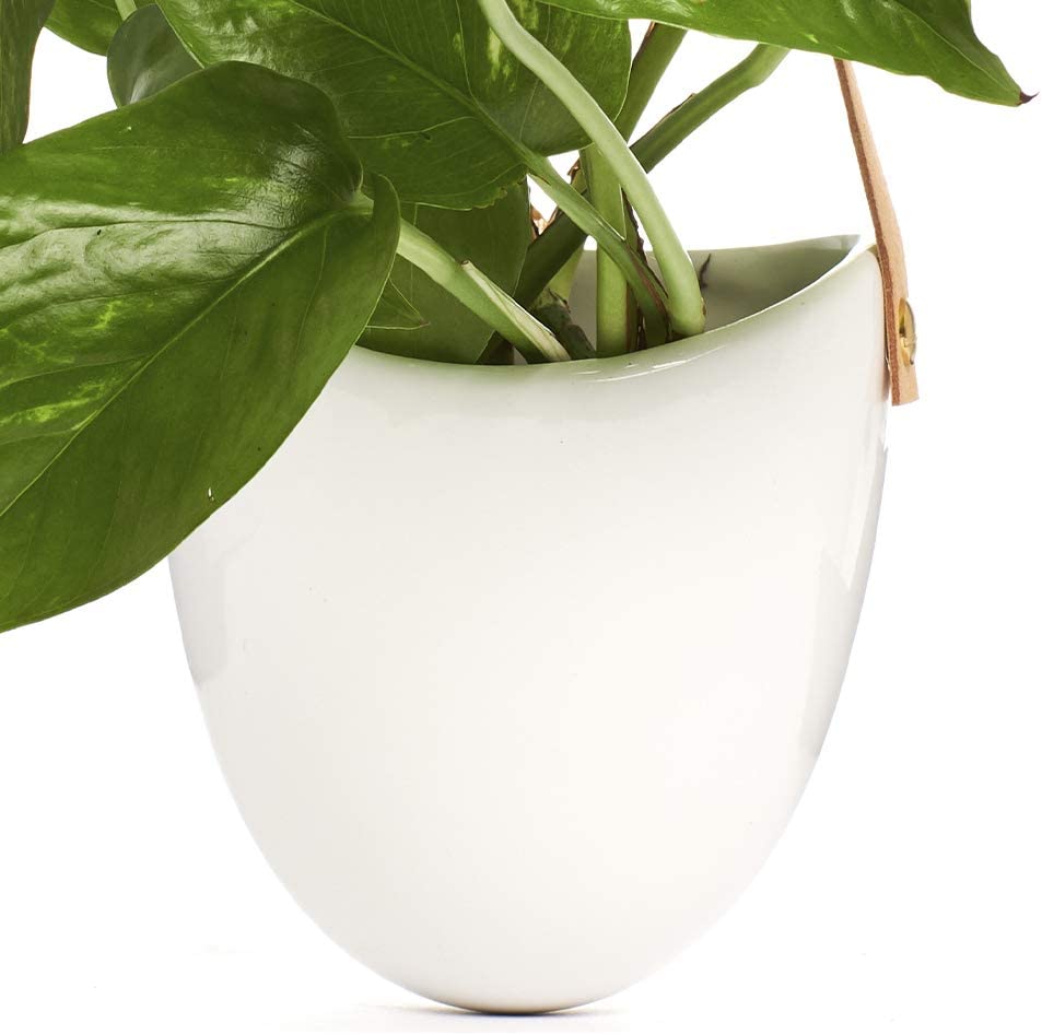 Size: 4.5" x 4.5" Ceramic Hanging Planter with 12.5" Leather Strap