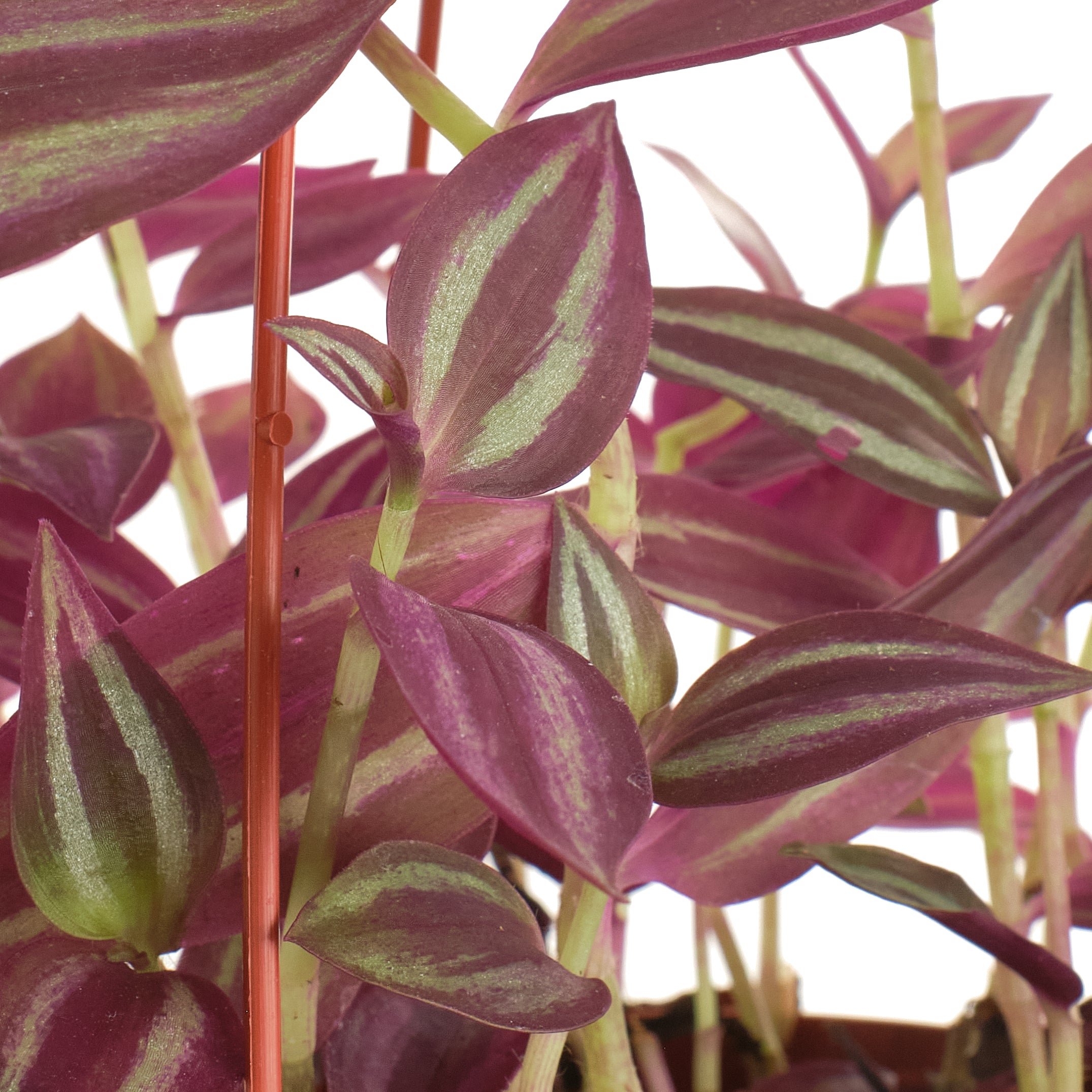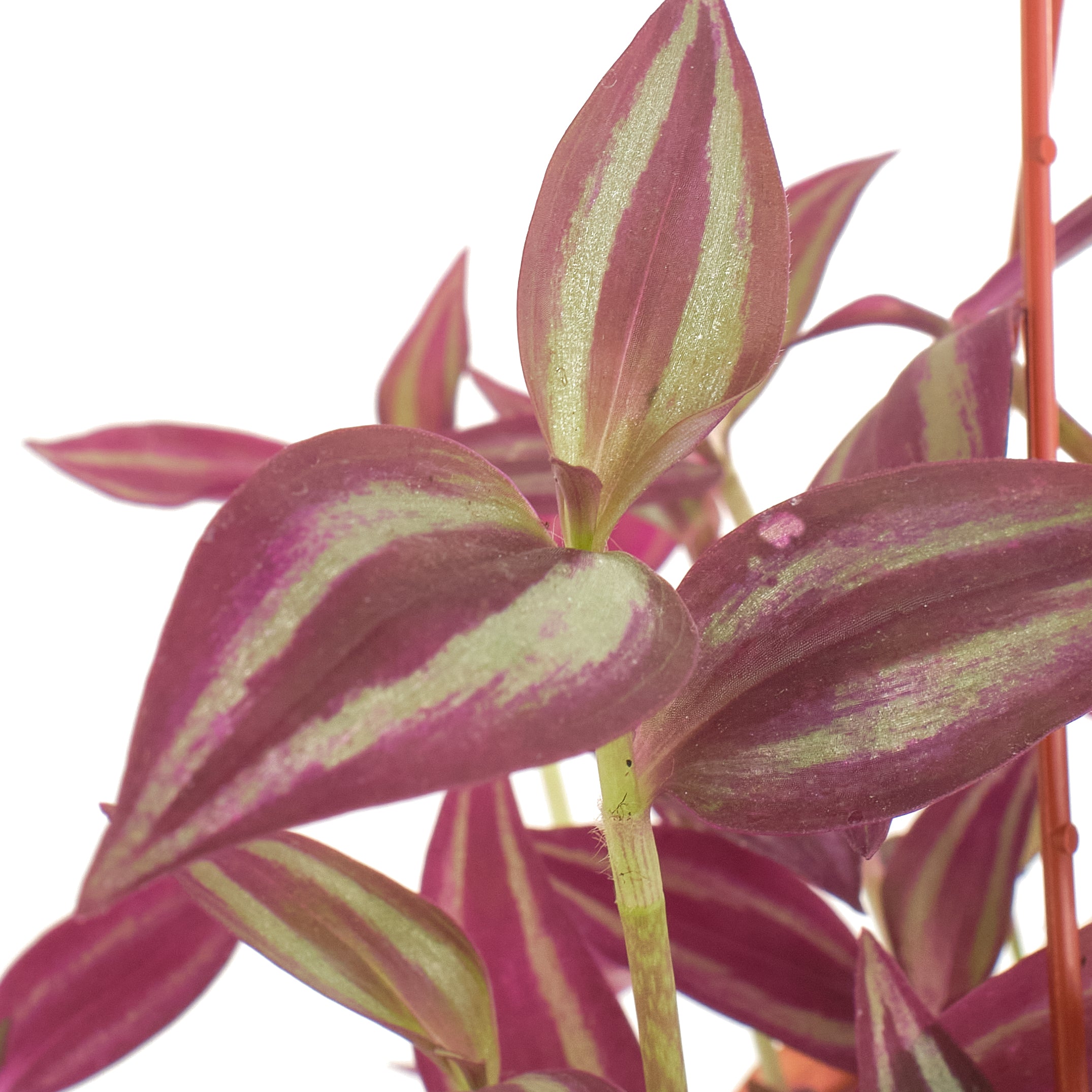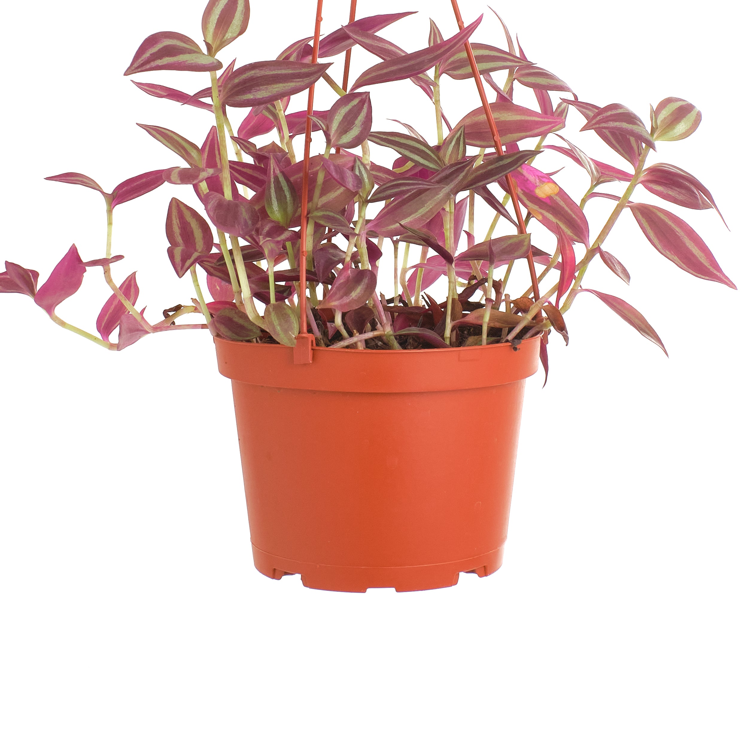 Tradescantia Zebrina, often known as the "Wandering Jew Plant" or "Inch Plant," is a stunning and popular houseplant celebrated for its vibrant and distinctive foliage. Its leaves, adorned with contrasting stripes of silver and green, create a visually captivating display that complements a range of interior settings. The Tradescantia Zebrina is valued for its versatility, air-purifying properties, and ease of care, making it a favored choice among plant enthusiasts and interior decorators. This charming houseplant thrives both in hanging baskets and as a trailing beauty, adding a touch of botanical allure to homes and offices. With its robust growth and minimal care requirements, the Tradescantia Zebrina offers a timeless and convenient solution for those who appreciate both aesthetic appeal and simplicity in indoor gardening, creating a harmonious blend of beauty and botanical simplicity in any interior space.