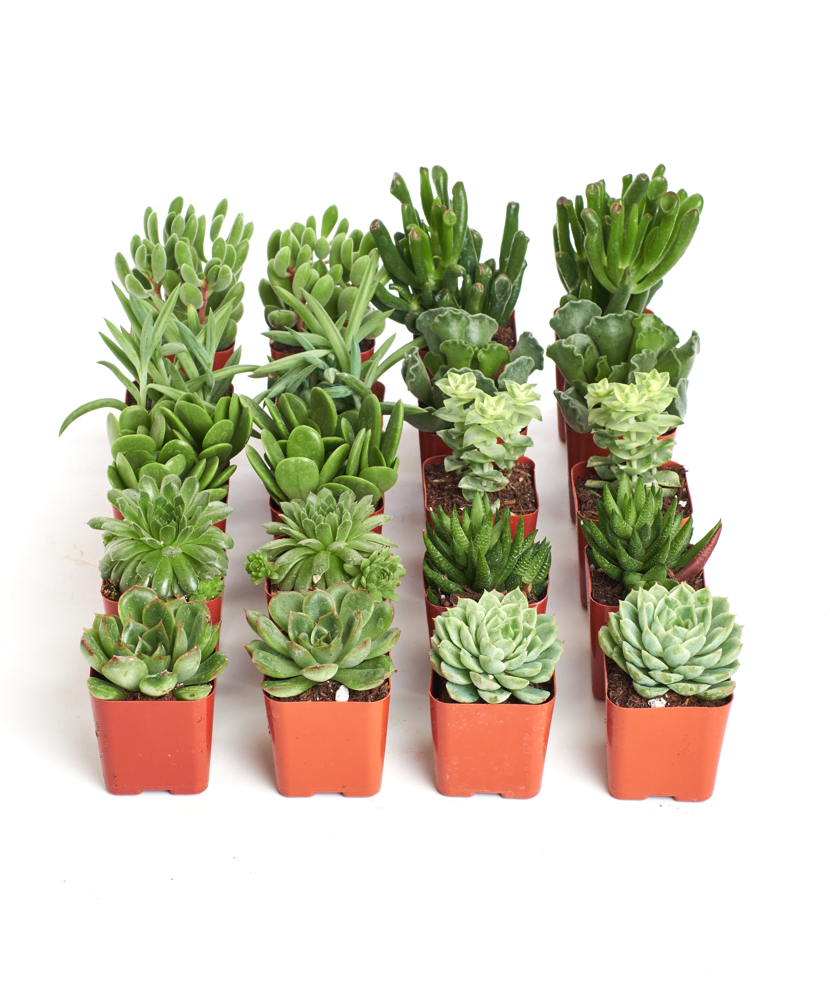 While the green collection includes some repeat species, we've designed it to offer a diverse range of green succulent species with many shapes and textures. This collection provides both familiarity and excitement, making sure you have a well-rounded succulent assortment that is full of beauty.